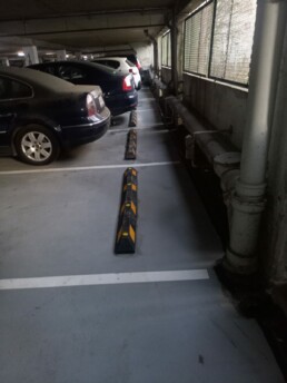 Ainsi, les véhicules ne heurteront plus les murs d’enceinte des parkings. Ces butées de stationnement permettront d’éviter la présence de pneus ou autres objets posés le long des murs d’enceinte des parkings, conférant au lieu un aspect visuel plus agréable !
